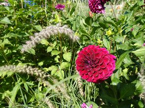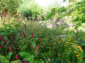 De tuin aan de vaart was compleet anders van opzet, daar waren het de bloemen die in het oog sprongen. Heel veel soorten op kleur in de borders gezet, waarvan er veel in bloei stonden.