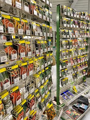 Na een rondje vol vragen, tips en verhalen over bollenziektes trokken we in drie groepjes de showroom in. Al tussen de eerste schappen voelde het als een snoepwinkel voor tuinders: glimmend tuingereedschap, nestkastjes in alle vormen, gieters in prachtige kleuren, rollen bindtouw — werkelijk alles waar een hobbytuinder van kan dromen. De nieuwe display zuilen hebben we mogen uitproberen, gemakkelijk om informatie en een prijs te checken van een product.