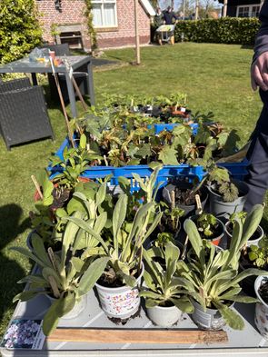 Het was heel grappig, op de tafel stonden de plantjes die je aanbood en eronder de plantjes die je mee naar huis nam. Iedereen is blij en voldaan naar huis gegaan.